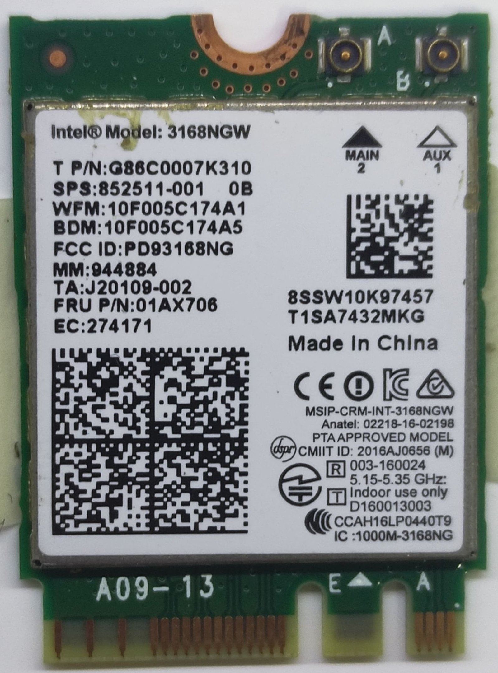 İntel 3168NGW Wifi Wireless Kartı
